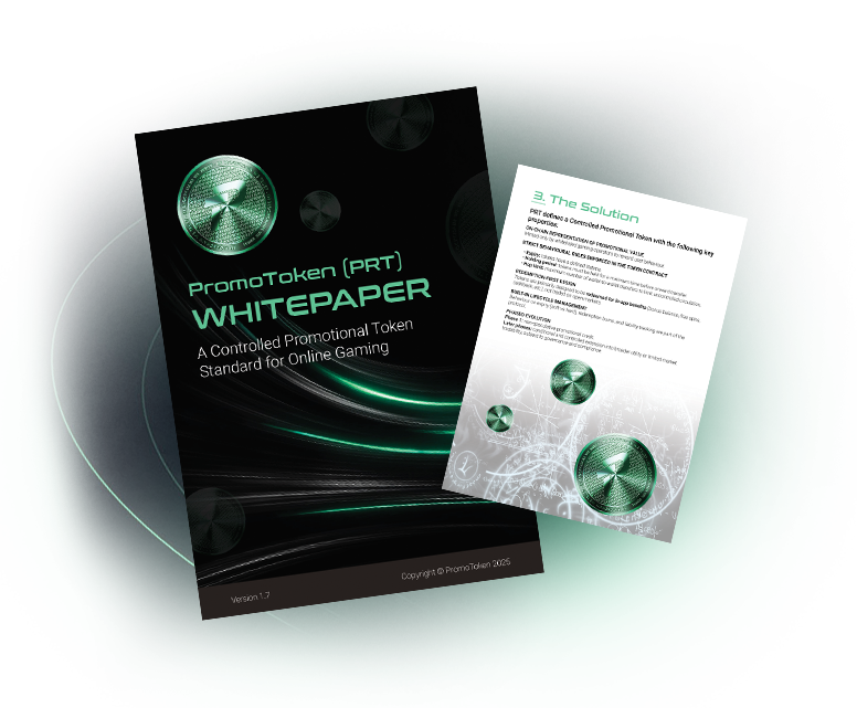 PromoToken (PRT) is a Desentralized, Controlled Promotional Token (CPT) standard: a programmable on-chain representation of promotional value that is non-speculative by design, supports expiry, transfer limits, and redemption constraints, and can evolve into a more general utility or tradable token once the ecosystem is mature and compliant. PRT is initially deployed on TRON as an extended TRC-20 token with embedded behavioural rules, operator roles, and lifecycle management tailored to online gaming.
